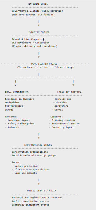 “To understand the debate, it helps to map out who is involved. The Peak Cluster project isn’t just a local issue—it brings together government, industry, communities, and environmental groups, each with very different priorities.”